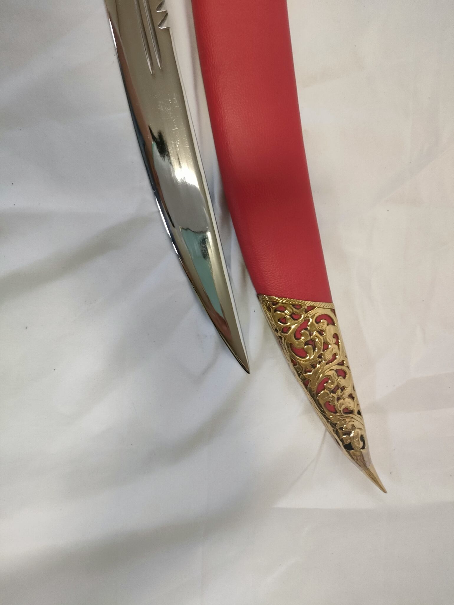 素材 : 真鍮クロムメッキ仕上げ刀身、真鍮装具、本革巻きの木製鞘