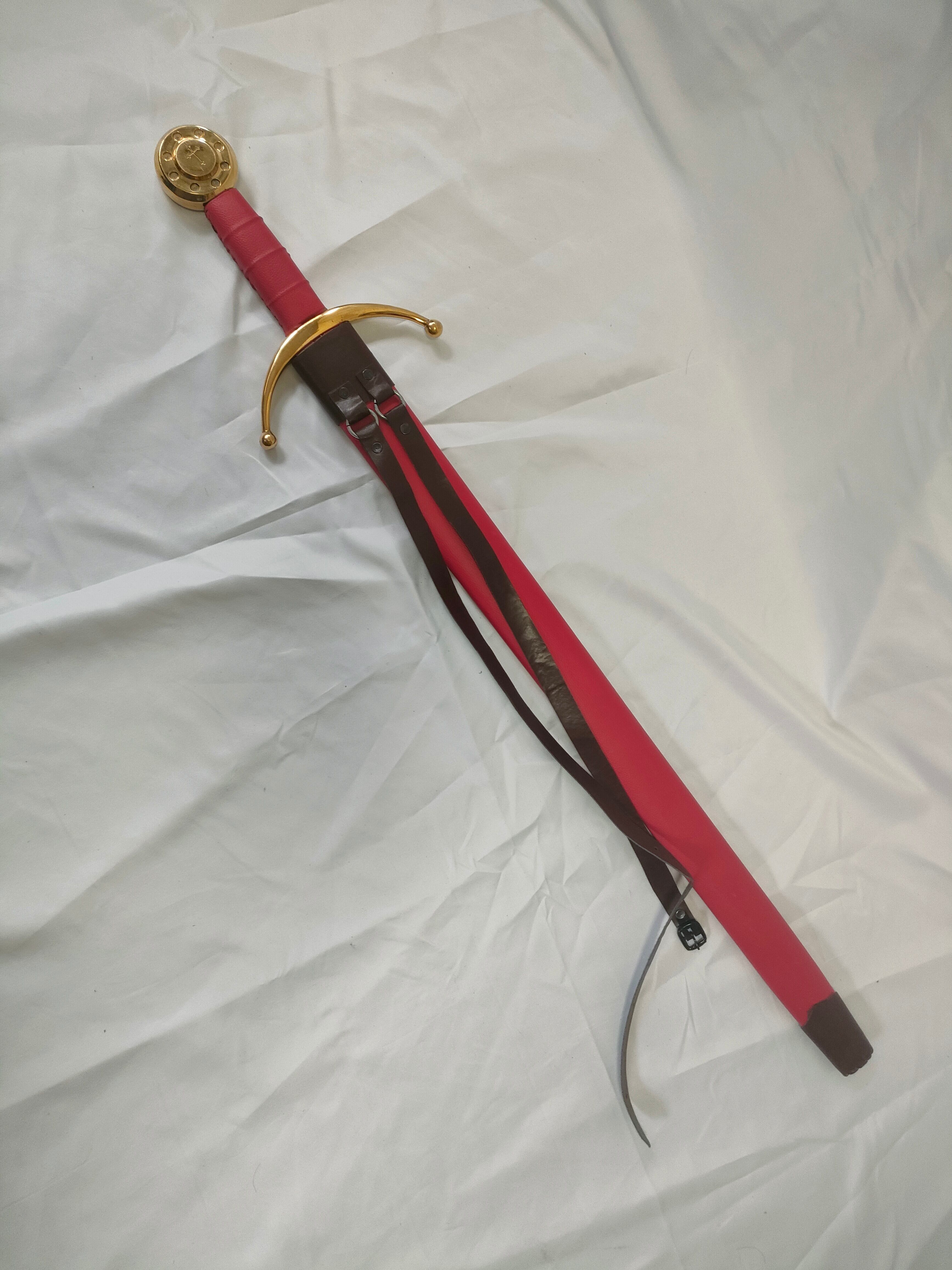 素材 : 真鍮クロムメッキ仕上げ刀身、真鍮装具、本革巻きの木製柄と鞘