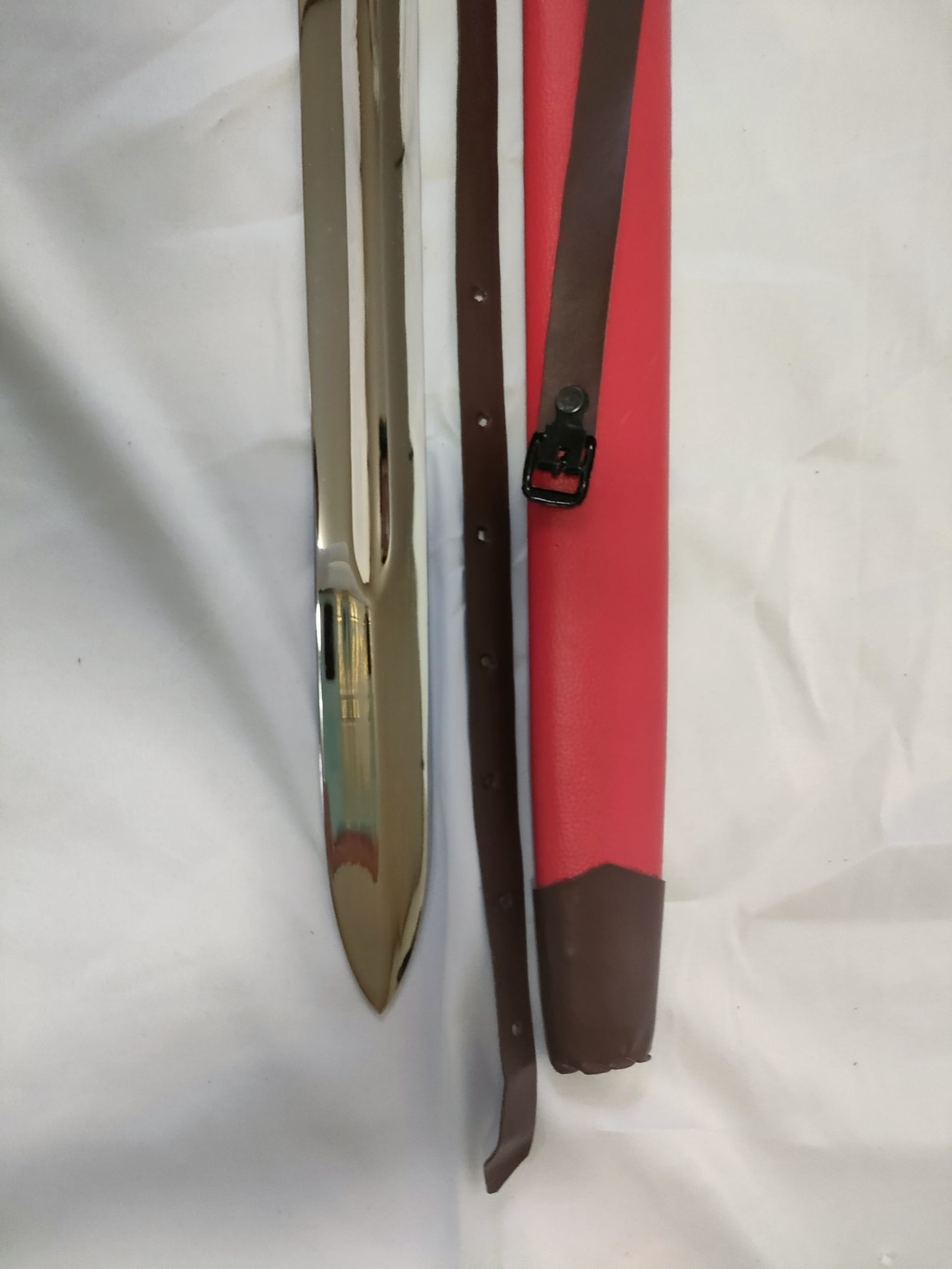 素材 : 真鍮クロムメッキ仕上げ刀身、真鍮装具、本革巻きの木製柄と鞘