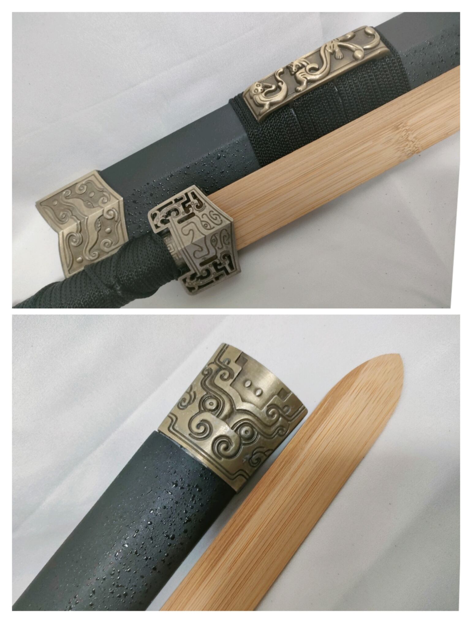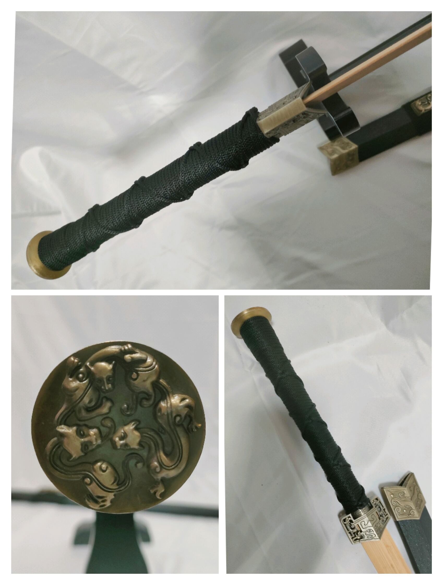 漢剣 黒石目鞘 竹光刀身 模造刀 中国剣