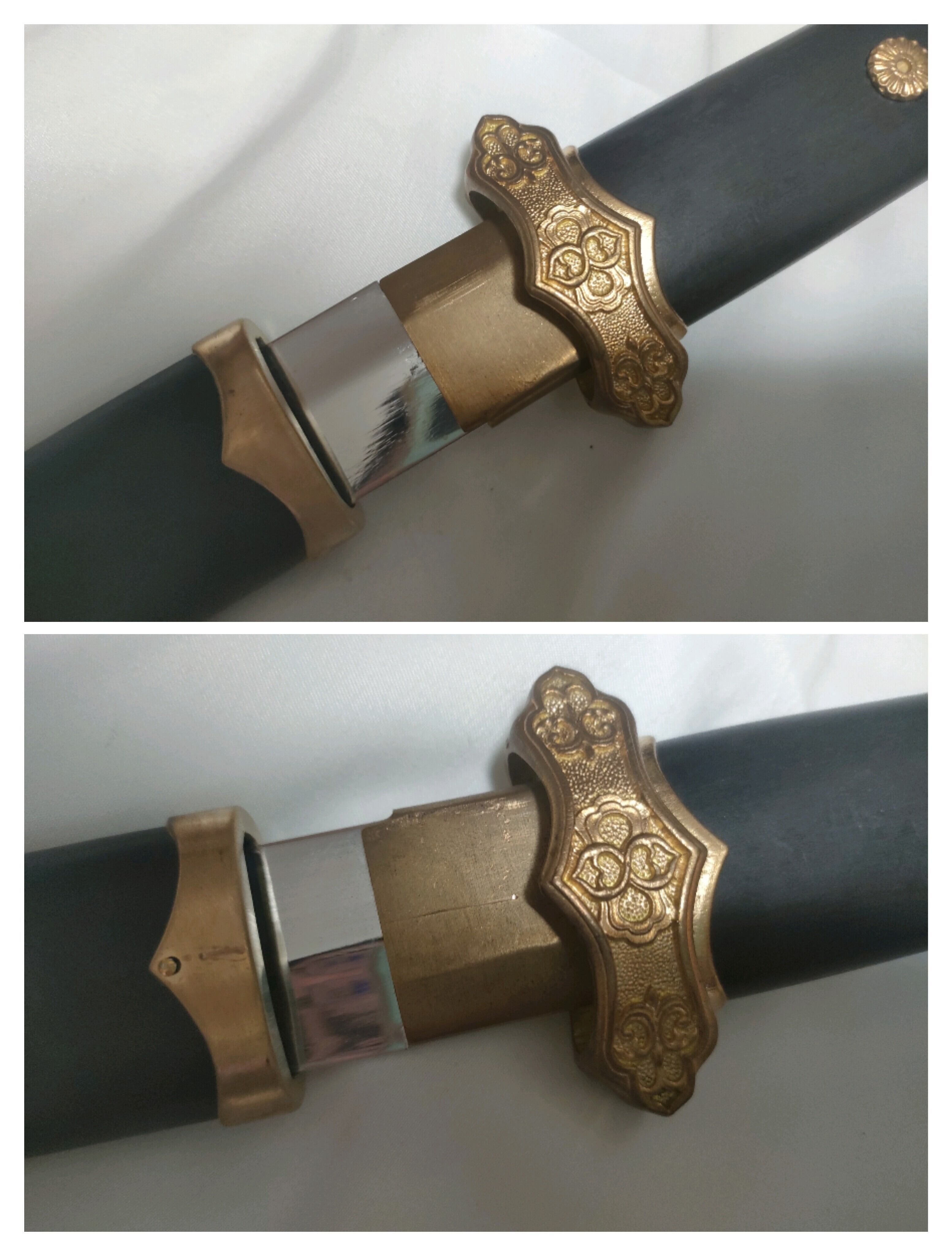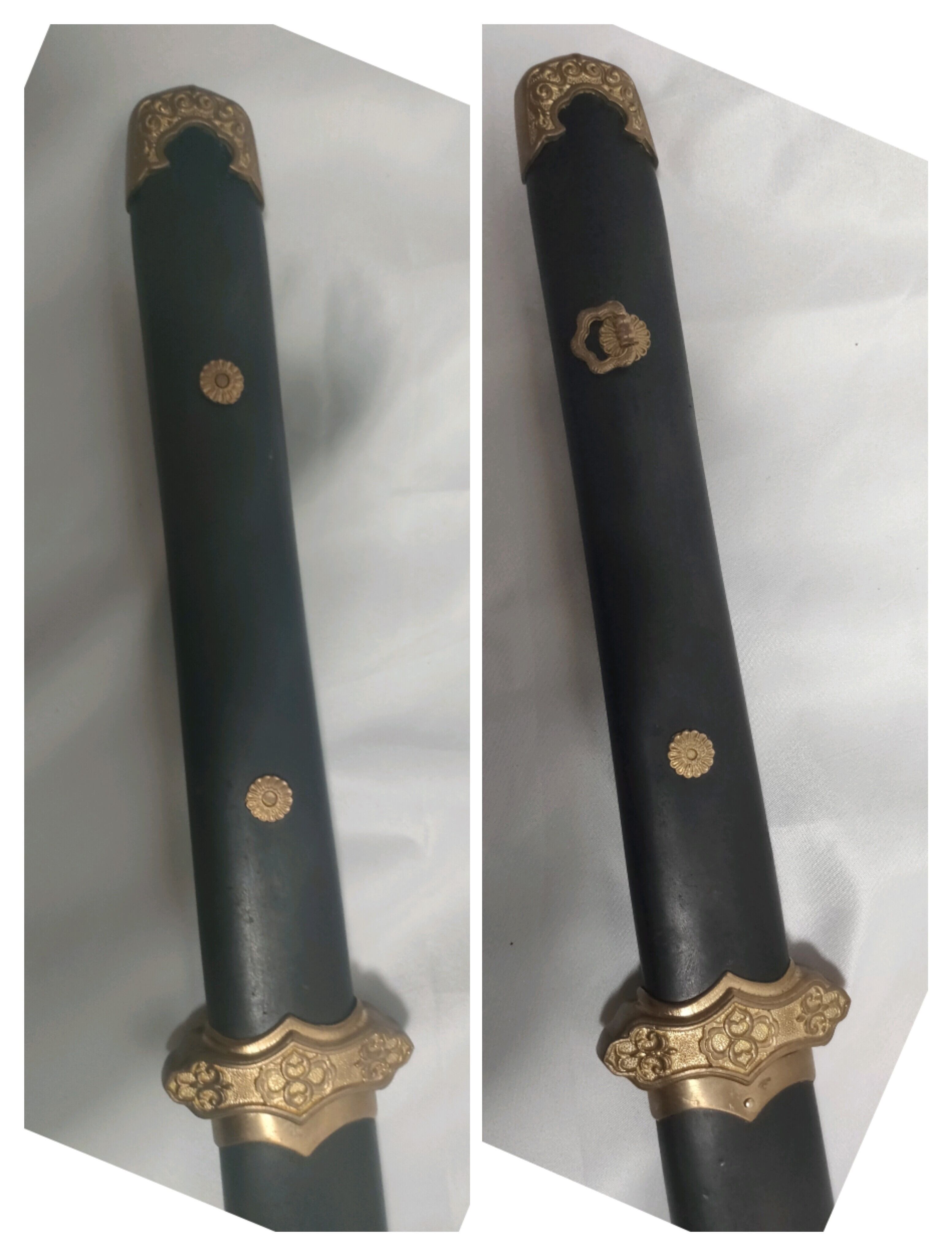 素材:アルミニウム合金(ジュラルミン)製刀身、純銅装具、木製(黒檀鳥木)柄と鞘