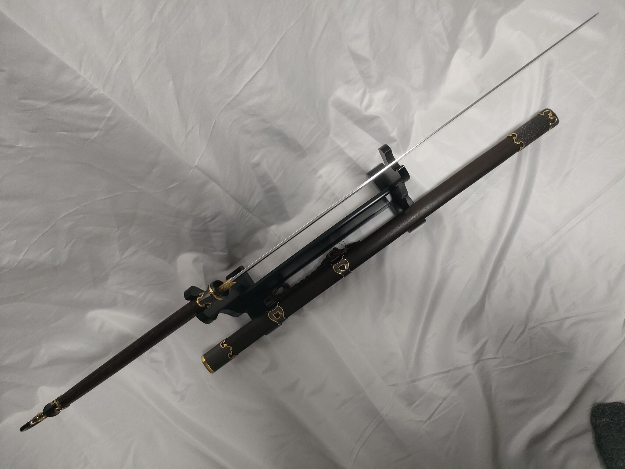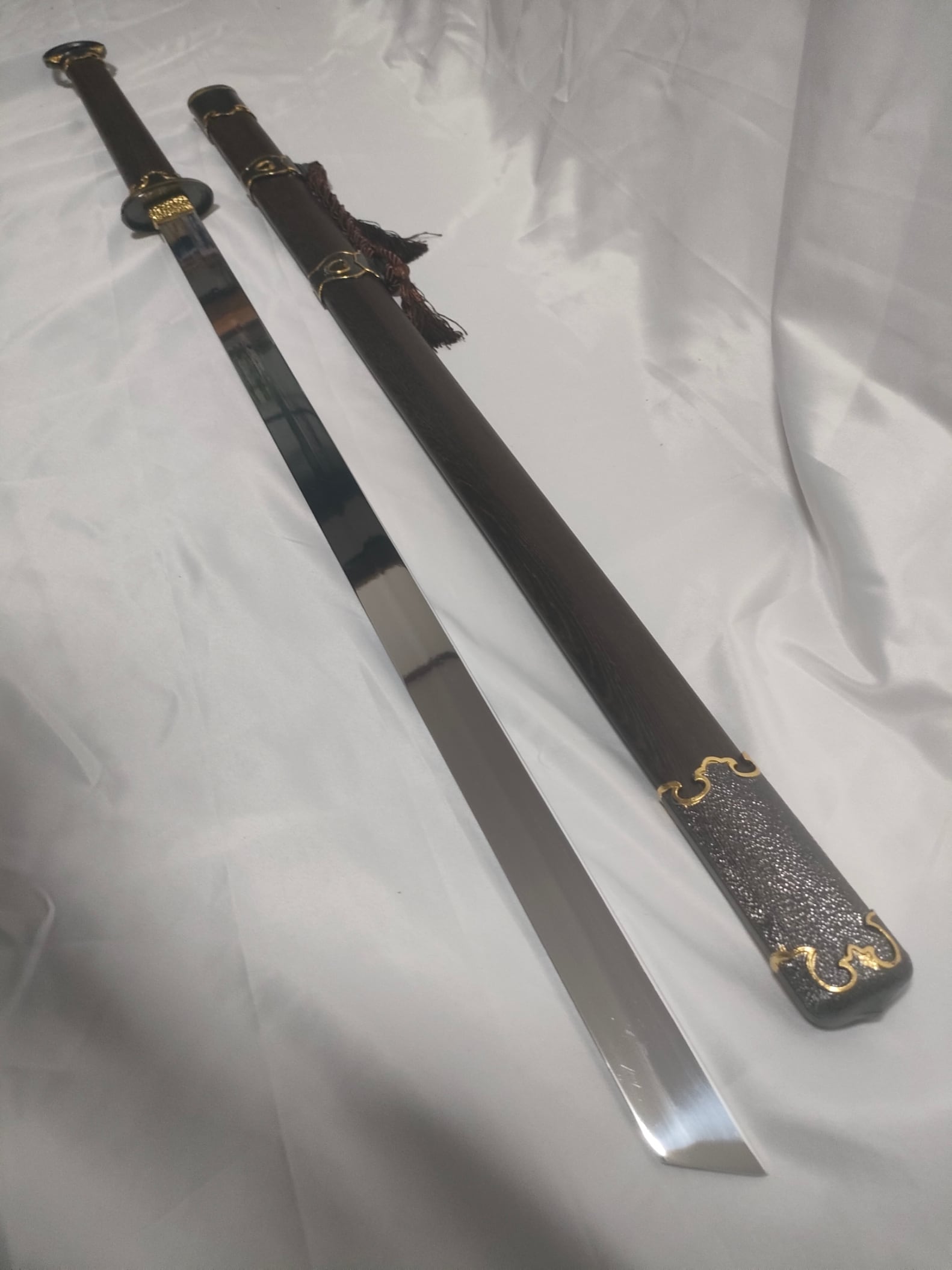素材:アルミニウム合金(ジュラルミン)製刀身、亜鉛合金装具、木製柄と鞘