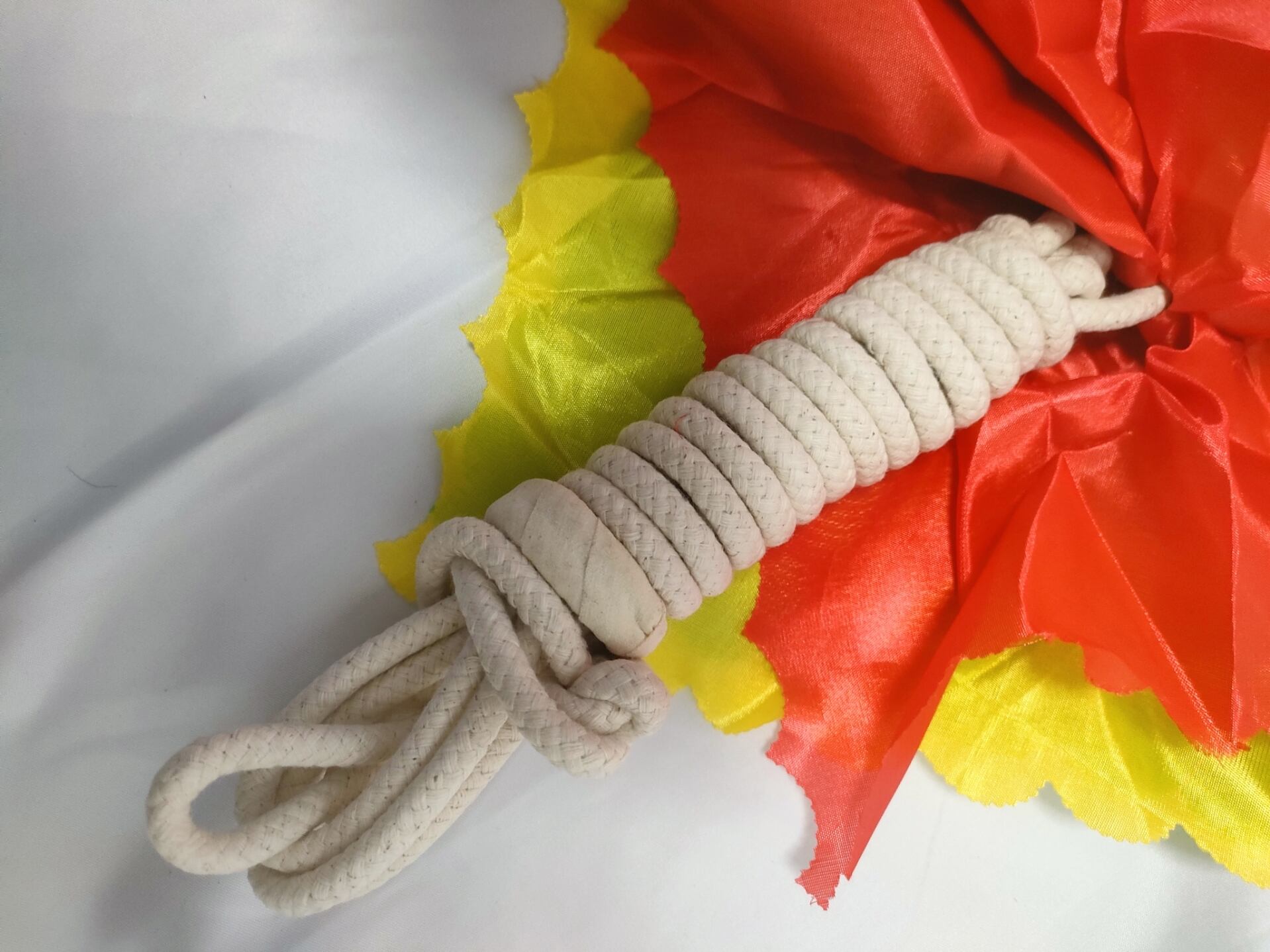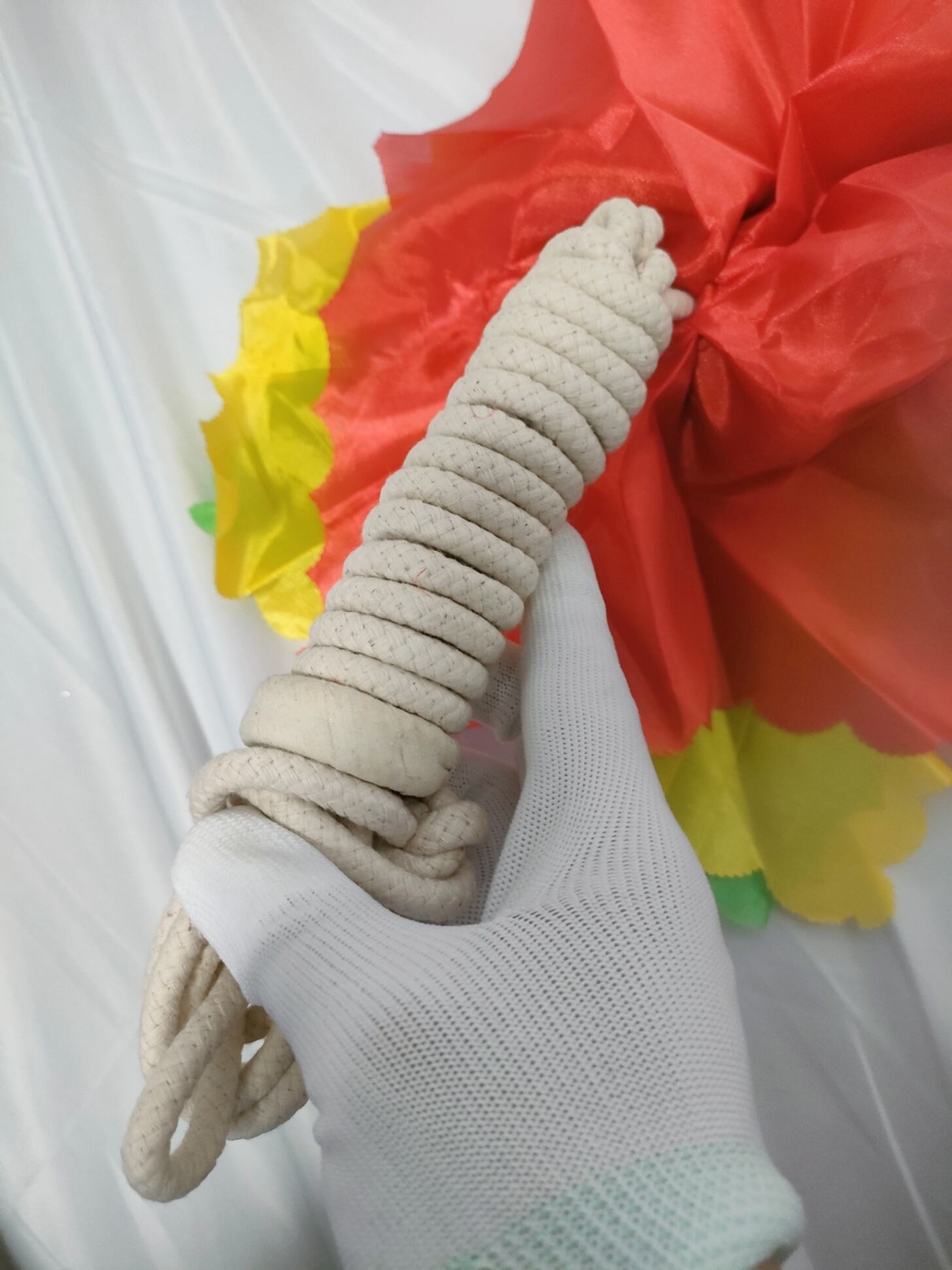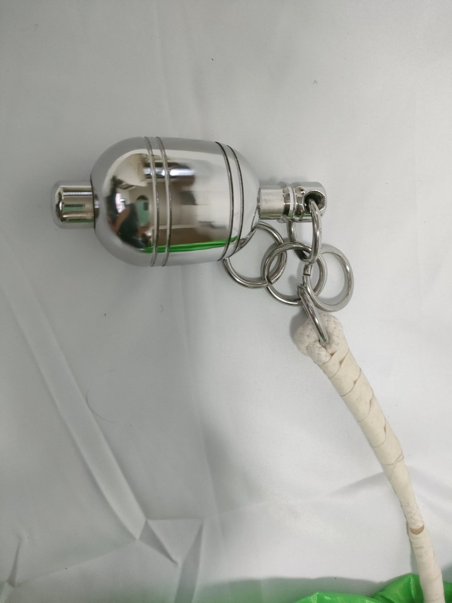 ステンレス製の頭部を持つ流星錘。太極拳練習用の武具。