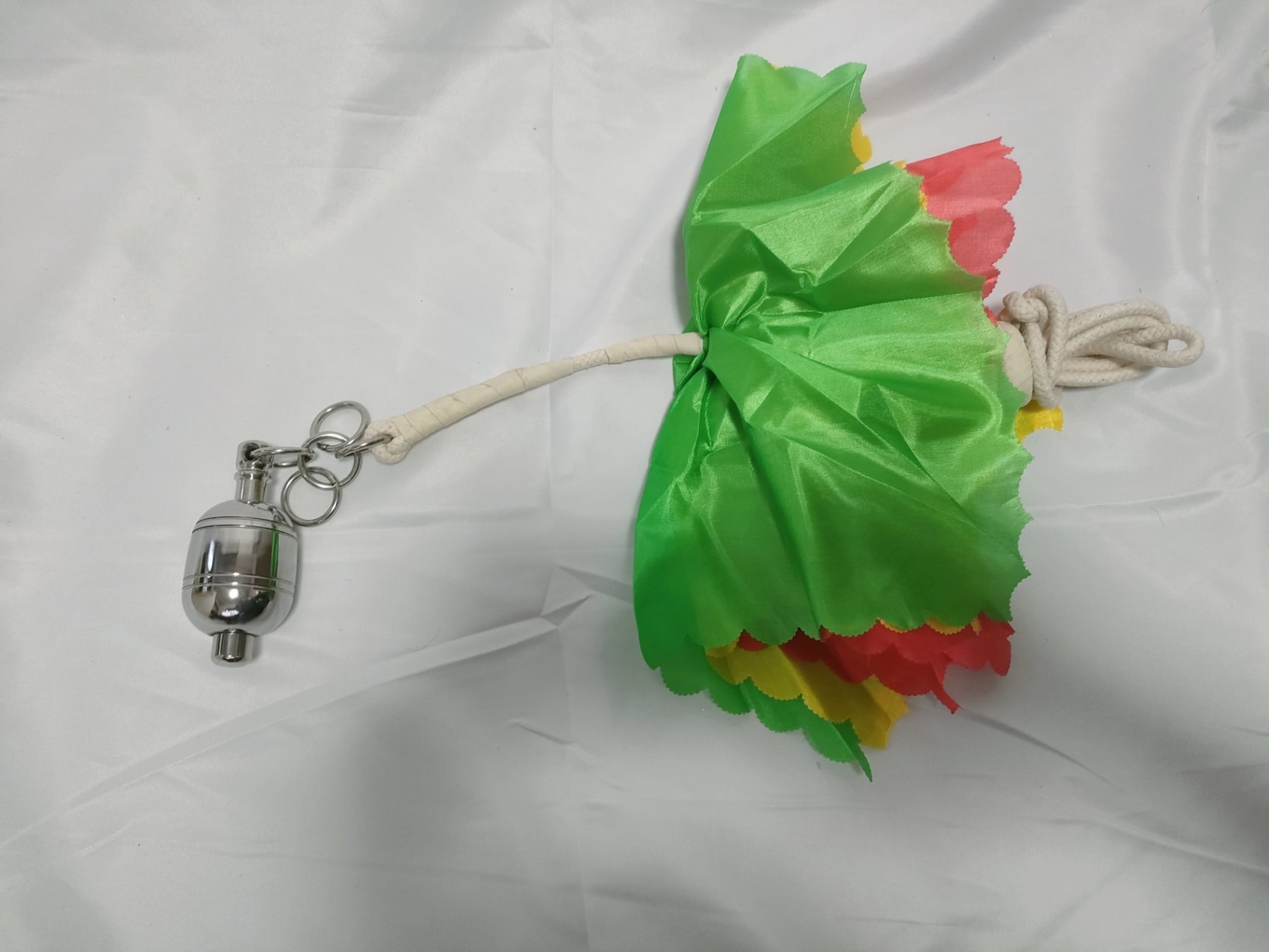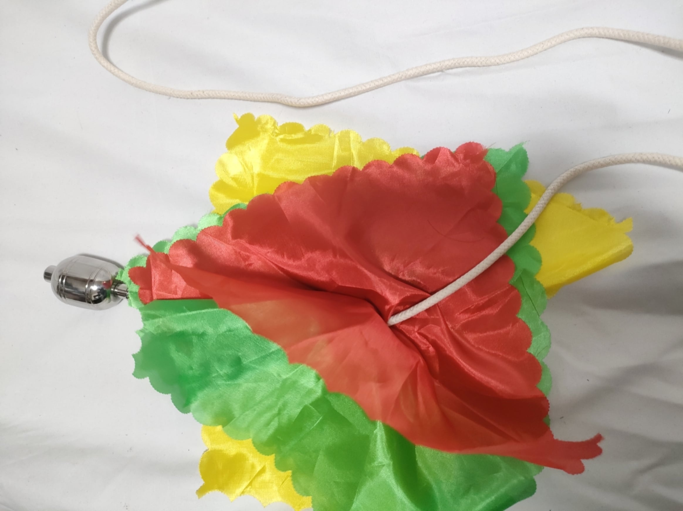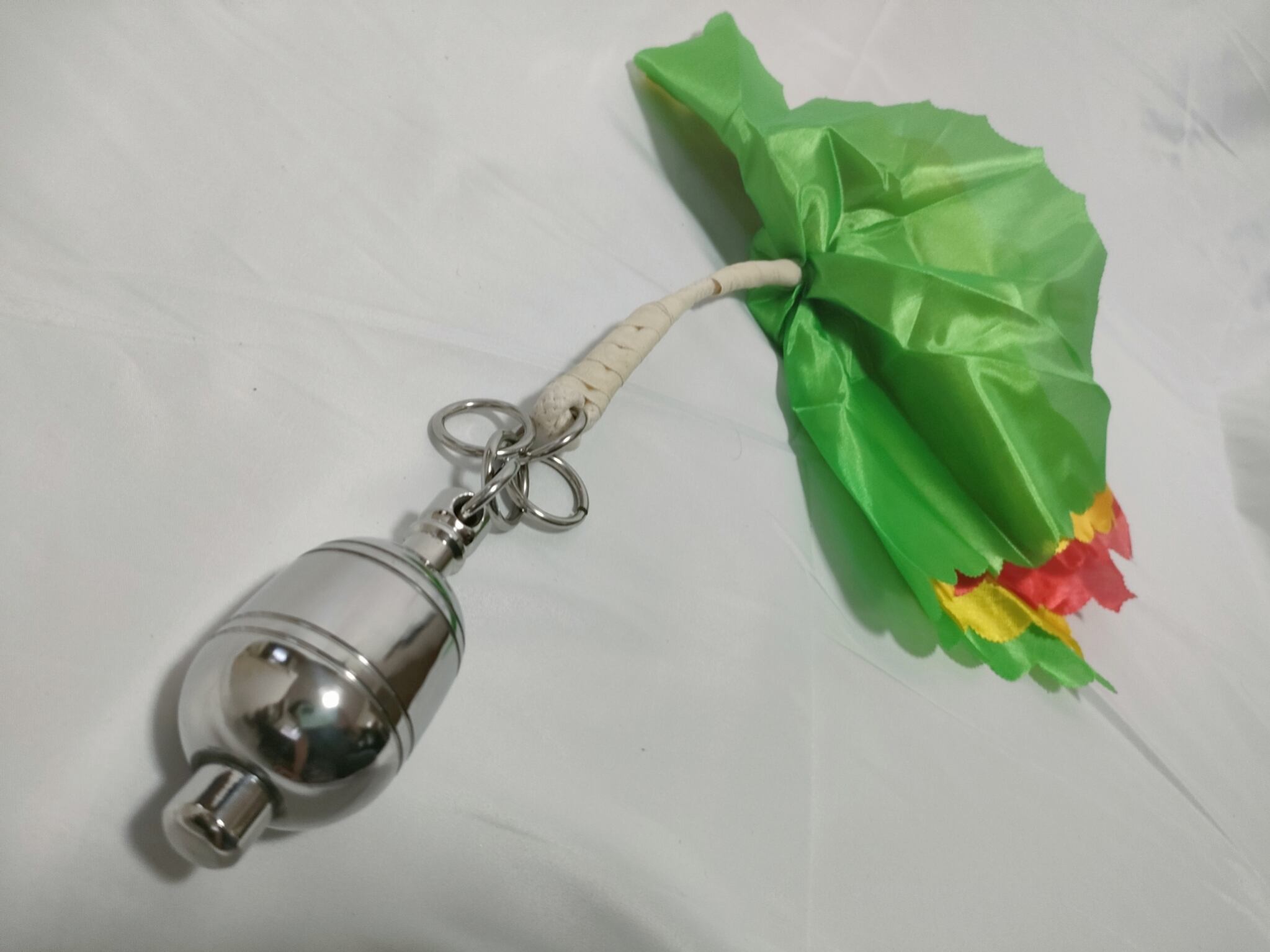 ステンレス製の頭部を持つ流星錘。太極拳練習用の武具。
