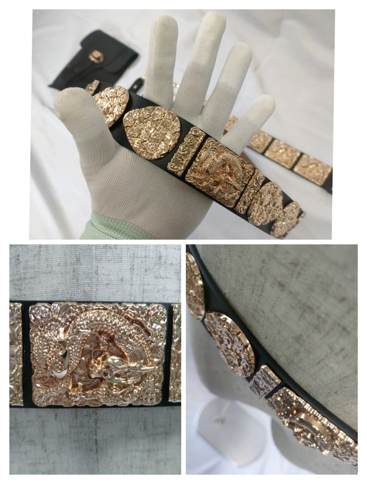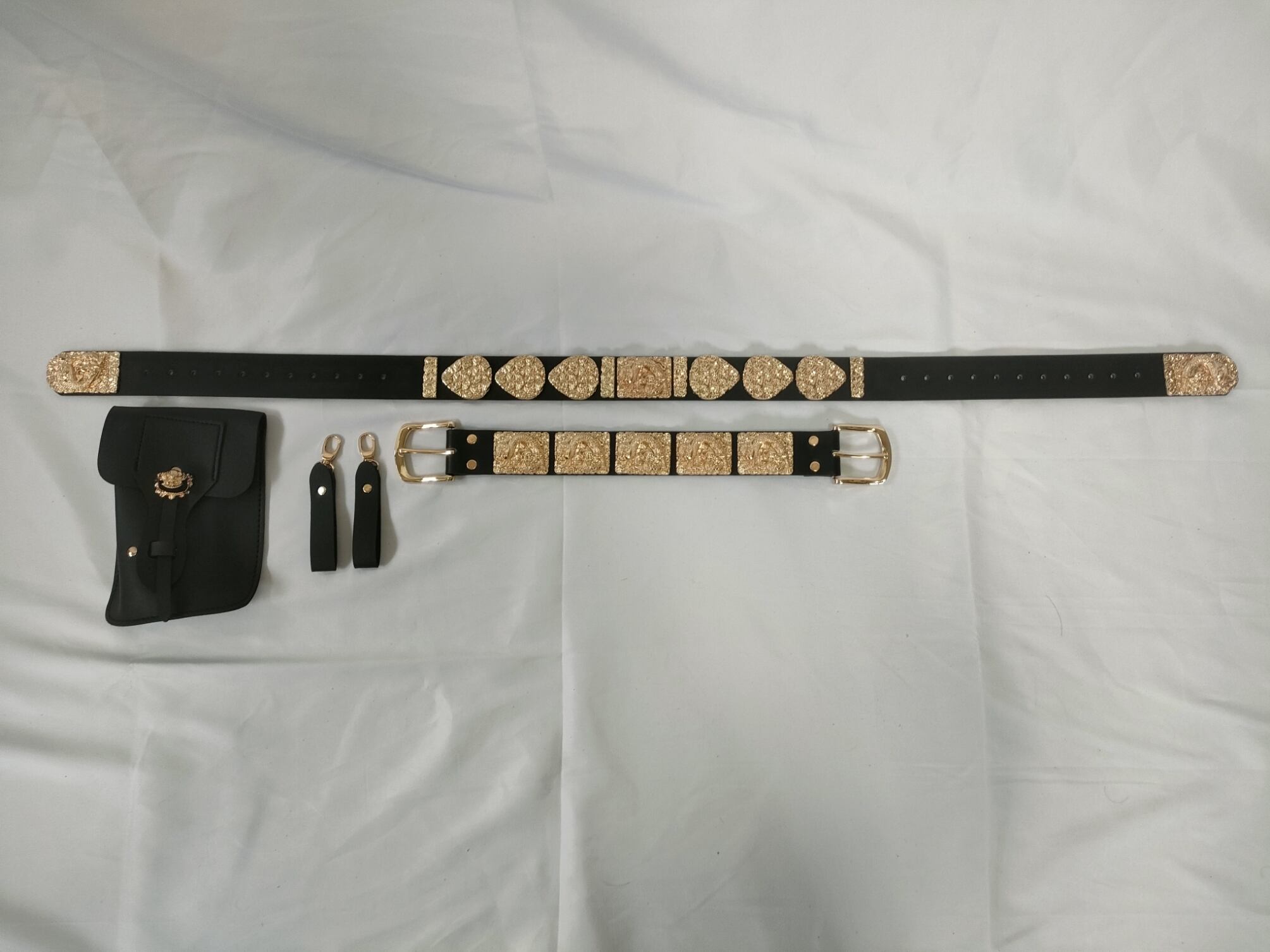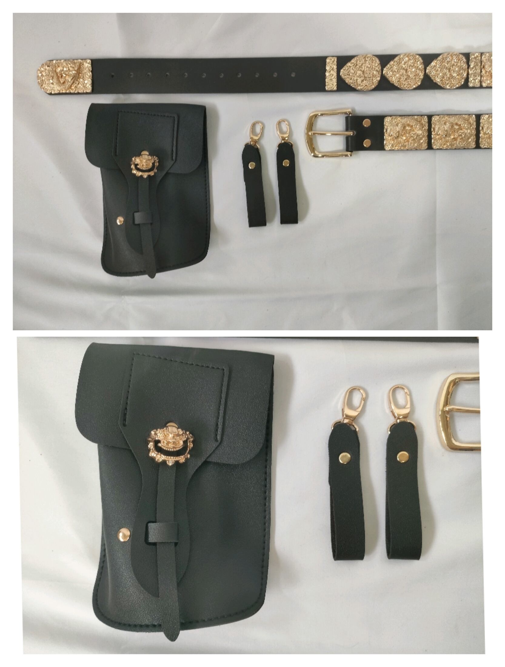 素材:合皮帯、ストラップとポーチ、合金飾り
