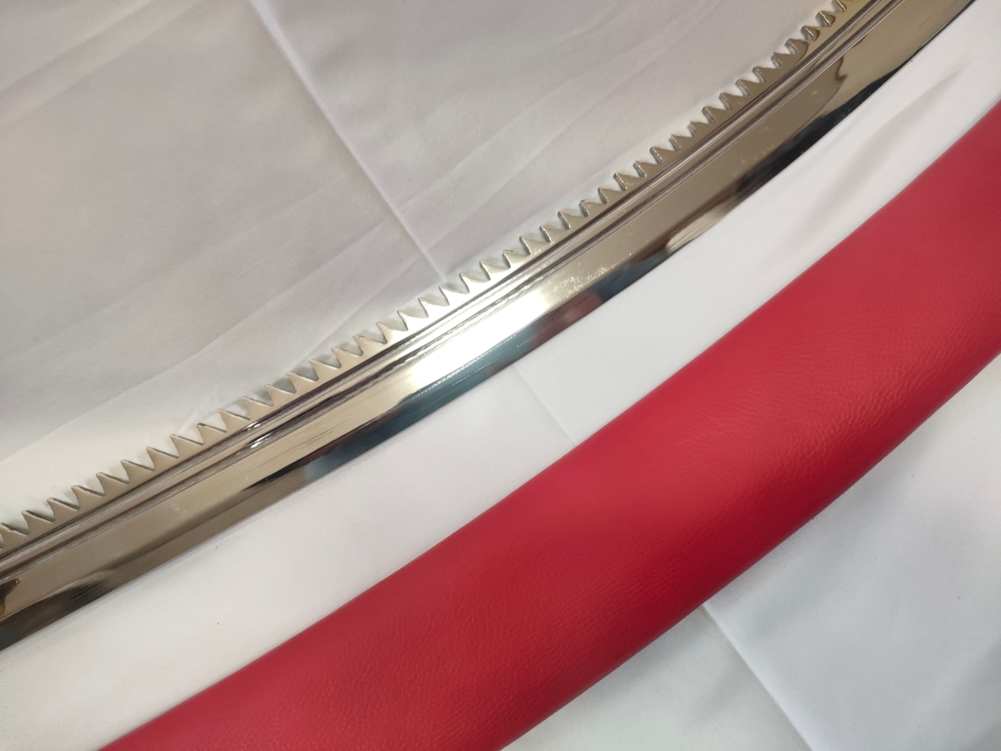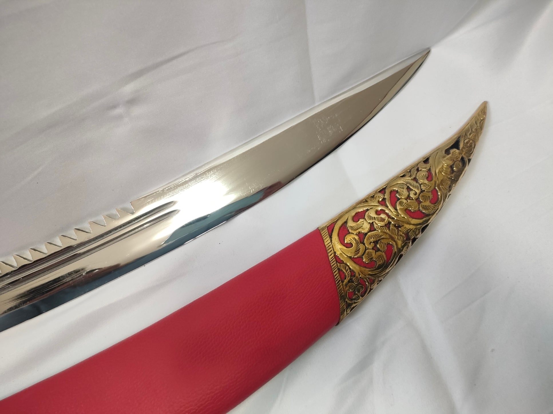 素材:真鍮クロムメッキ仕上げ刀身、真鍮装具、本革巻きの木製鞘