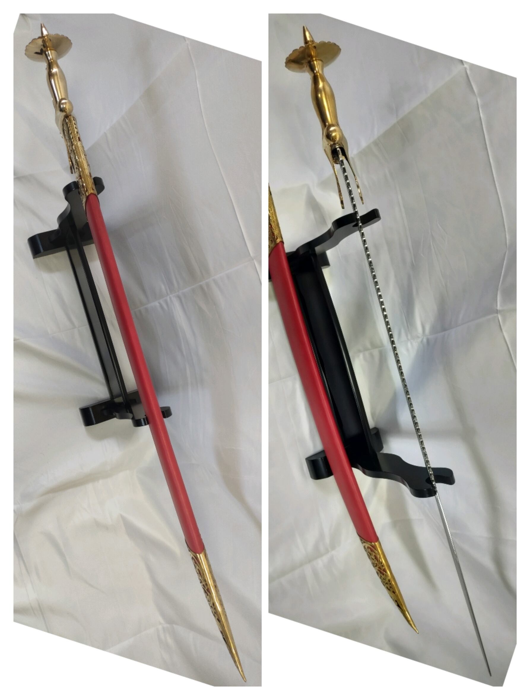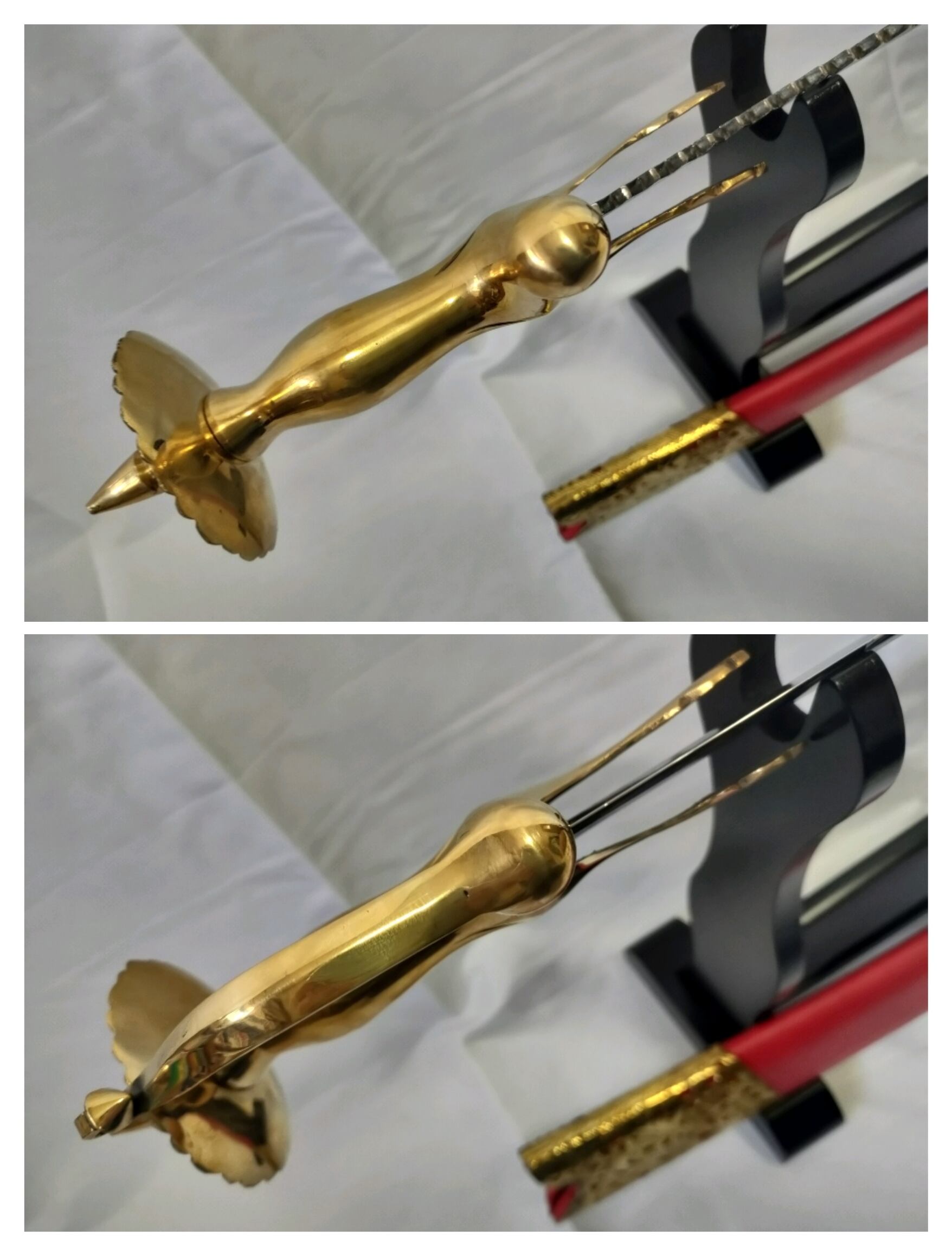 タルワールキルパンのレプリカ。刀身は真鍮製。